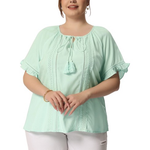 Agnes Orinda Women s Plus Size Lace Hollow Out Ruffle Boho Blouse
