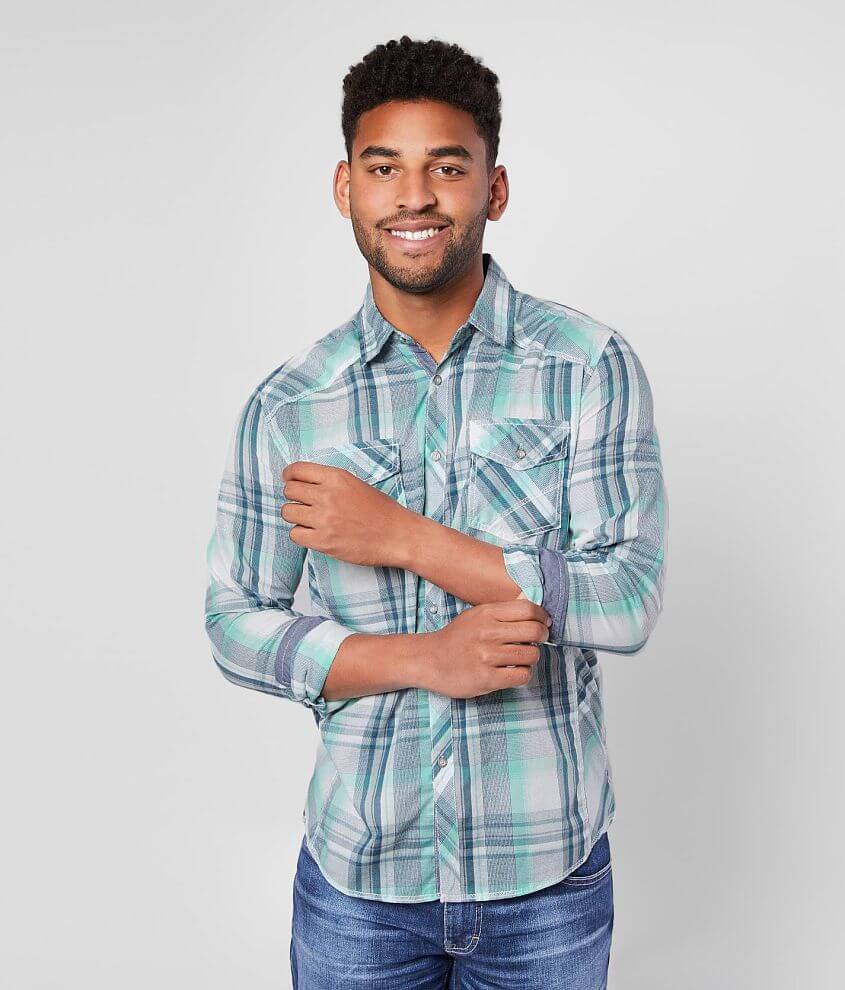 BKE Athletic Plaid Shirt Men s Shirts in Mint White Buckle
