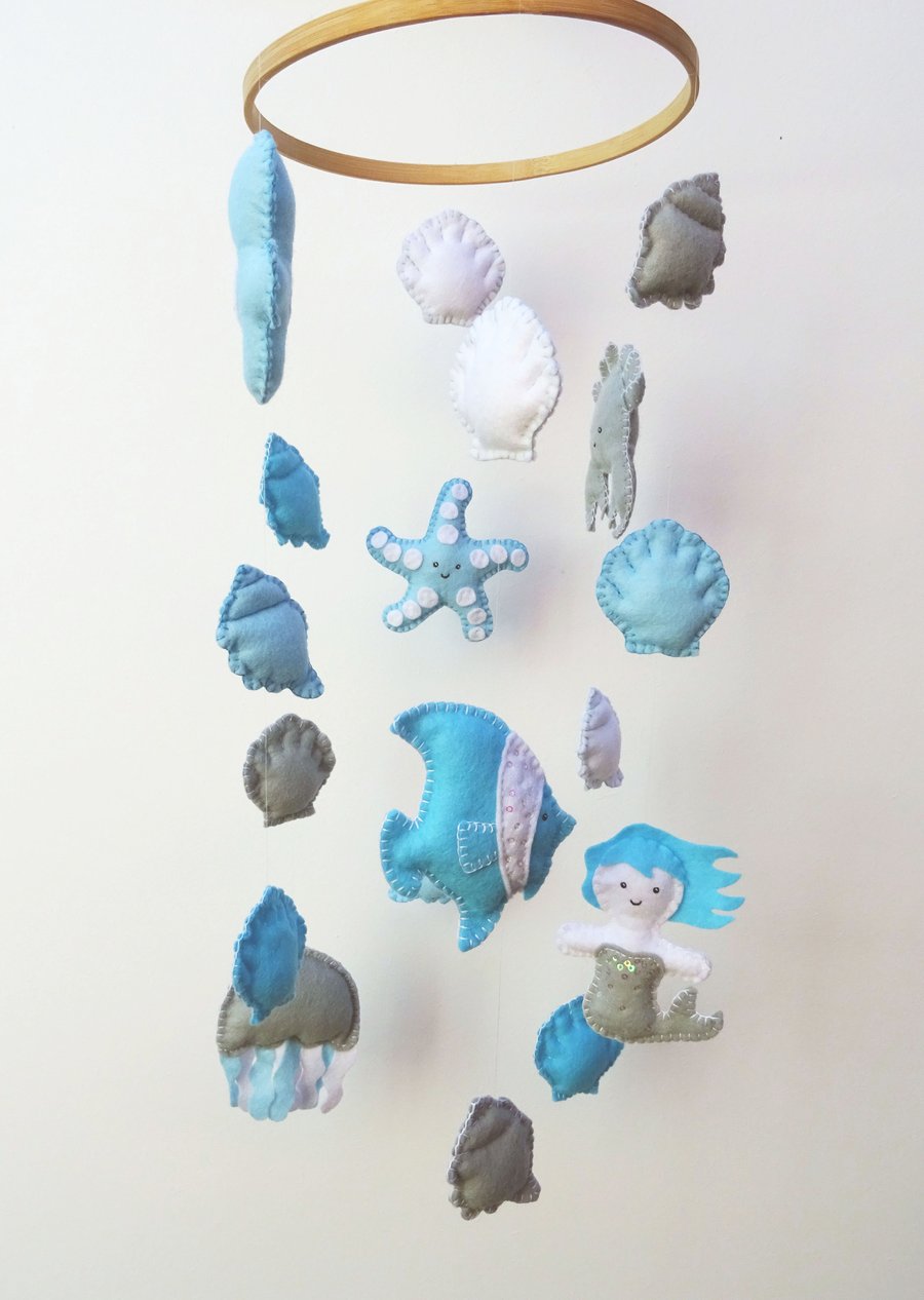 Baby Mobile Hand sewn Felt Under the Sea Mermaid Fish Seahorse Crab