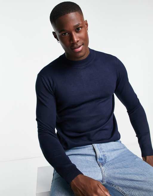 Pull Bear mock neck jumper in navy exclusive at ASOS
