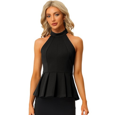 Allegra K Women s Summer Sleeveless Pleated Halter Neck Peplum