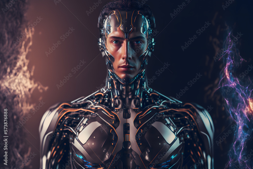 Stylish Cyborg man. Humanoid Robot with artificial intelligence