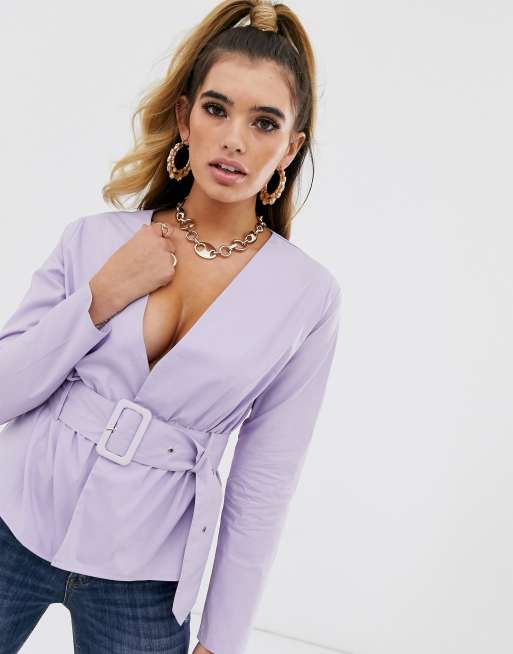 Belted clearance peplum top, Missguided plunge belted peplum top in lilac clearance