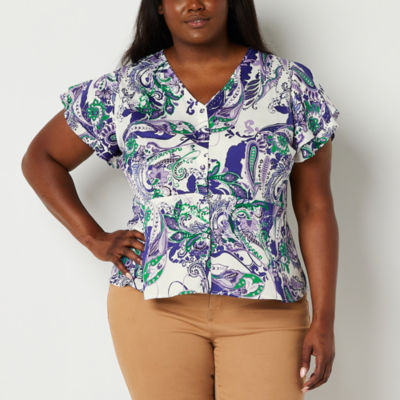 Liz Claiborne Womens V Neck Short Sleeve Peplum Top Plus