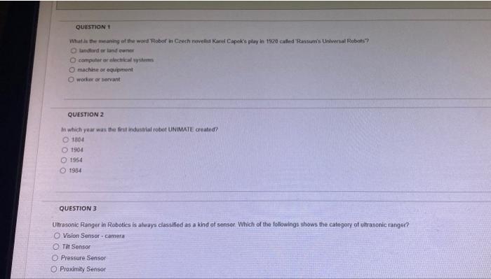 Solved QUESTION 1 What is the meaning of the word Robot in Chegg