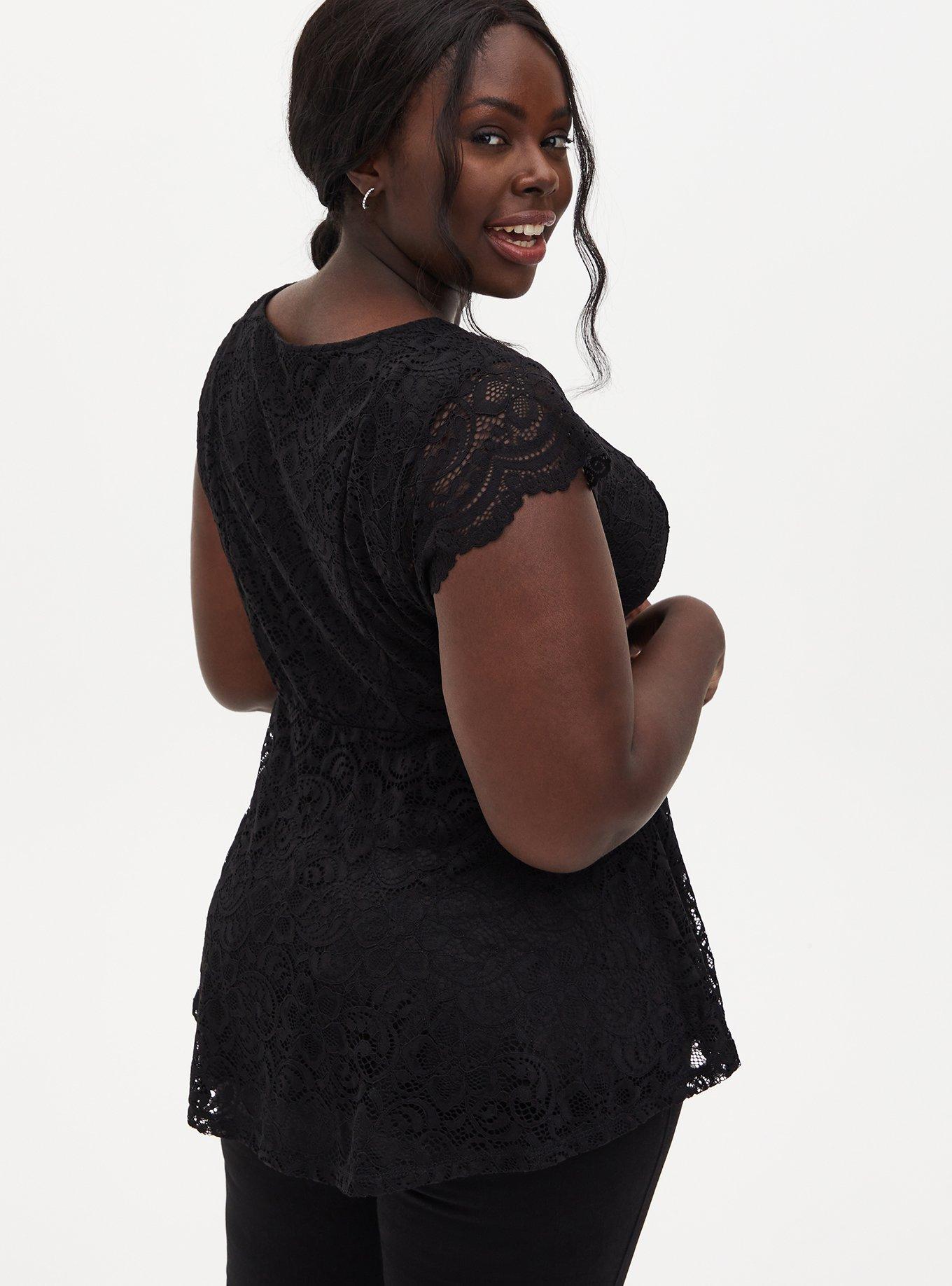 Black v neck clearance peplum top, Plus Size Lace V Neck Peplum Top Torrid clearance