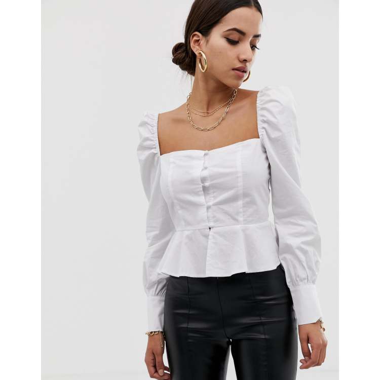 Missguided square neck peplum top clearance in white, White Missguided Tops for Women Lyst clearance