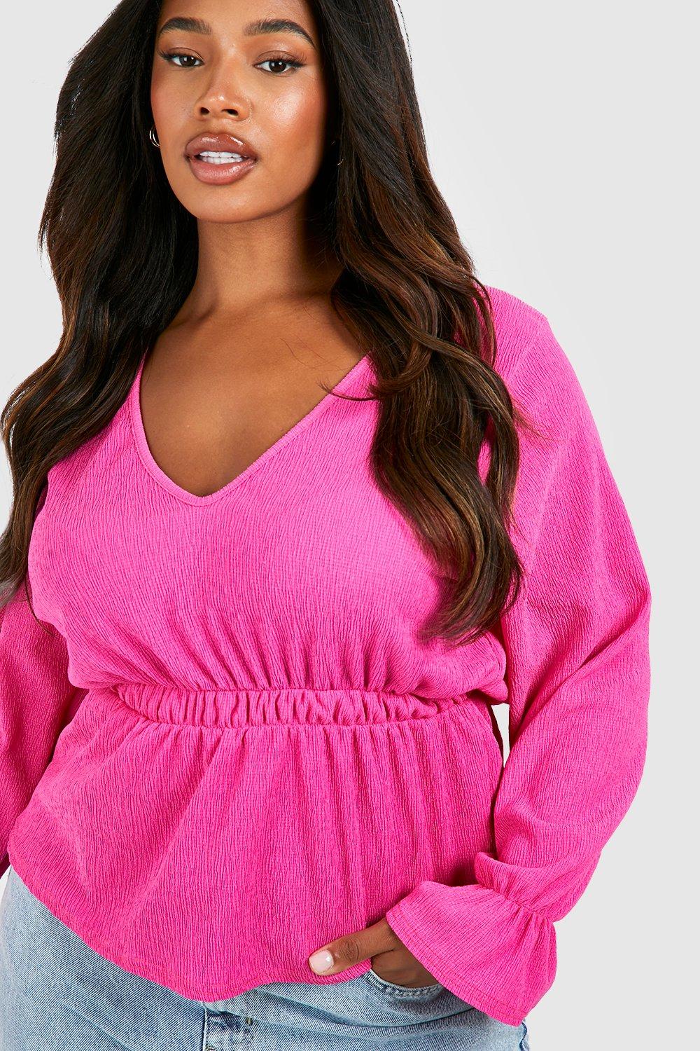 Boohoo clearance peplum blouse, Plus Shirred Waist Peplum Top boohoo clearance