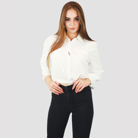 Solid Blouse With Elastic Waist Full Sleeve For Women White