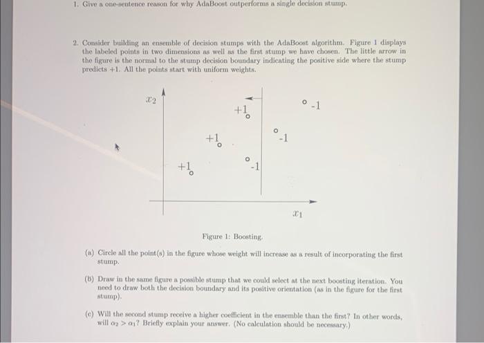 Solved 1. Given one sintetice reason for why AdaBoost Chegg