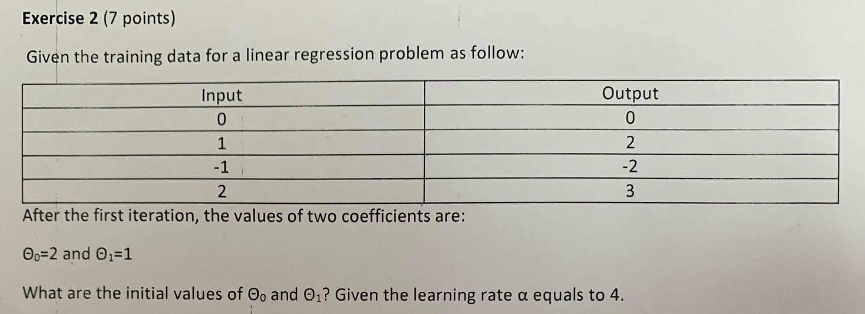 Linear regression training clearance data, Solved Exercise 2 7 points Given the training data for a Chegg clearance