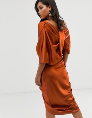 Asos edition drape asymmetric clearance midi dress in satin, ASOS EDITION drape asymmetric midi dress in satin ASOS clearance