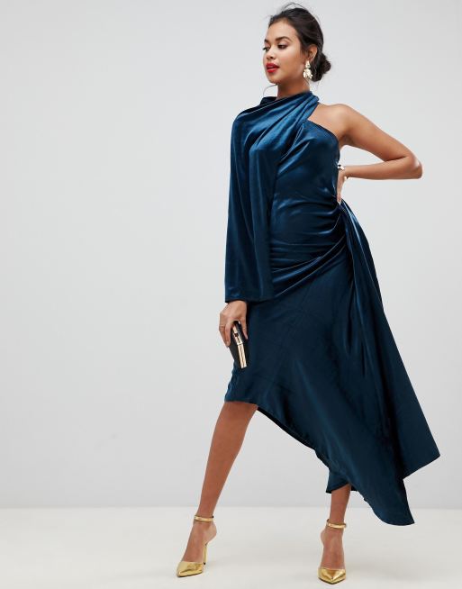 Asos edition asymmetric drape dress clearance in velvet, ASOS EDITION satin drape top and skirt set in mustard ASOS clearance
