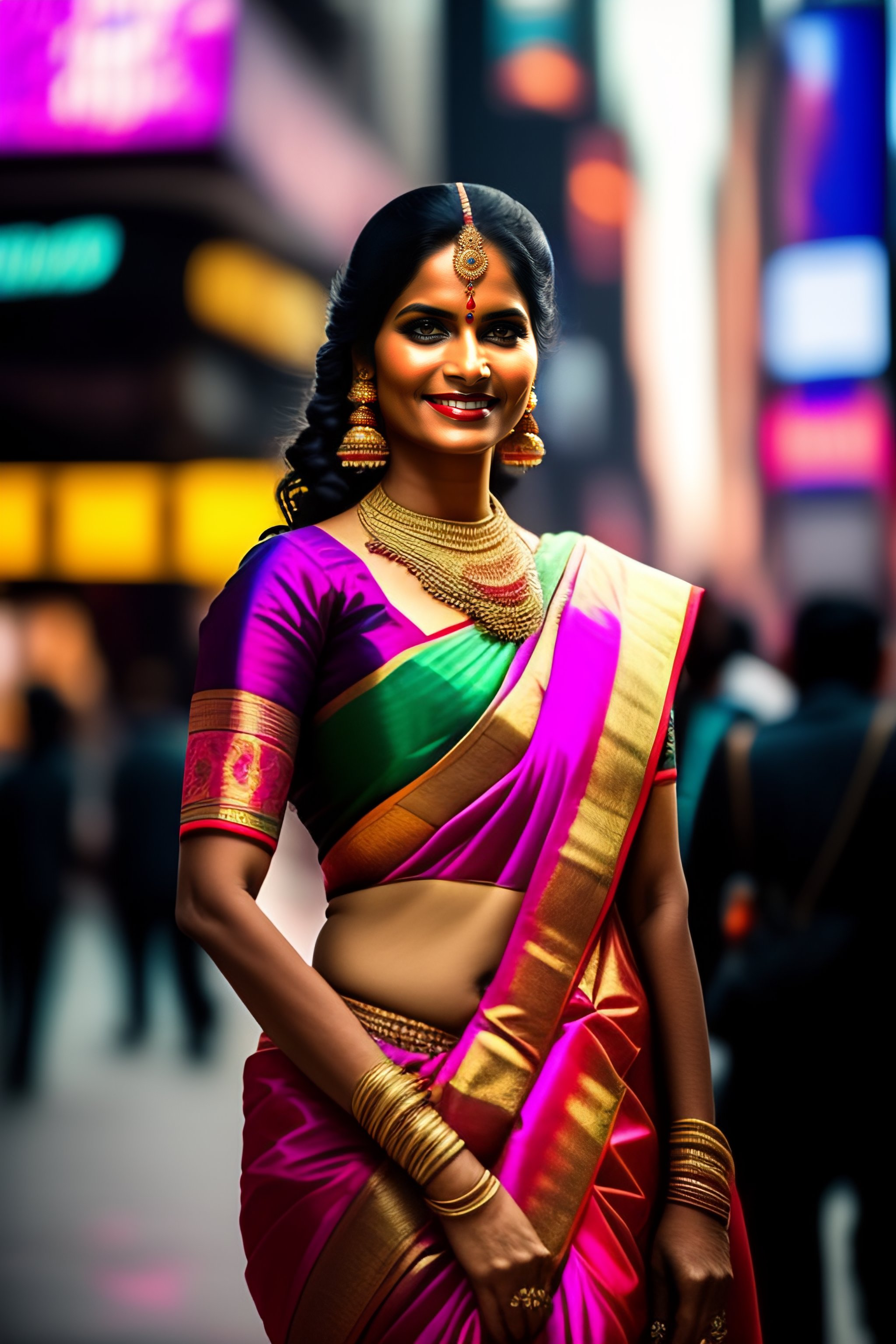Lexica Indian lady wearing saree in times square