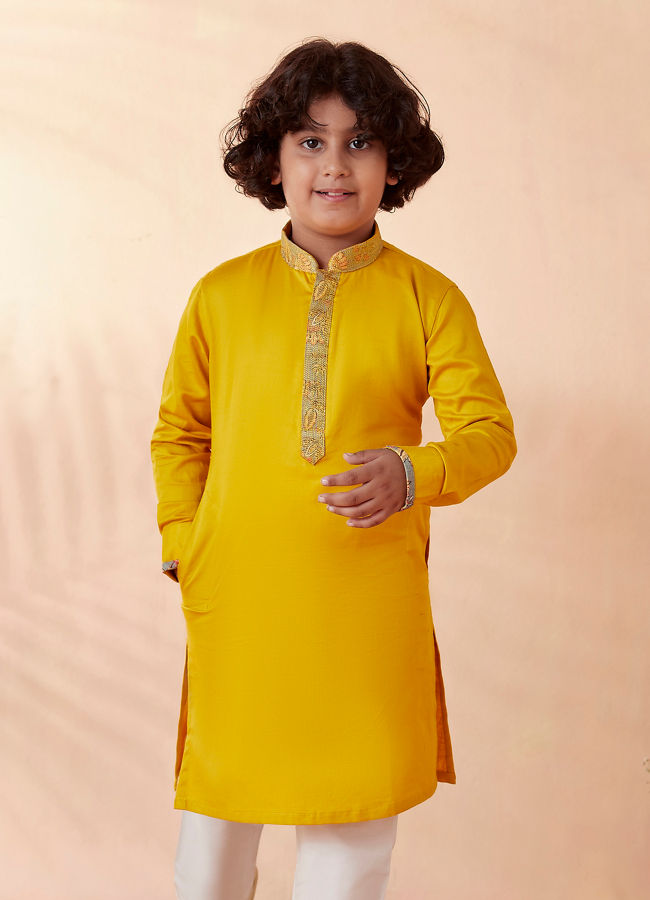 Buy Boys Grey And Yellow Kurta Jacket Set Online Manyavar Kurta