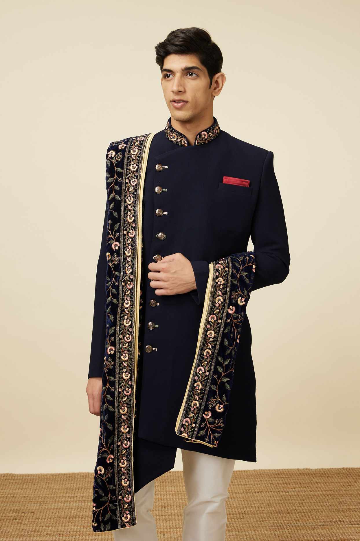 Buy Blue and Maroon Achkan Indo Western Online in the UK Manyavar