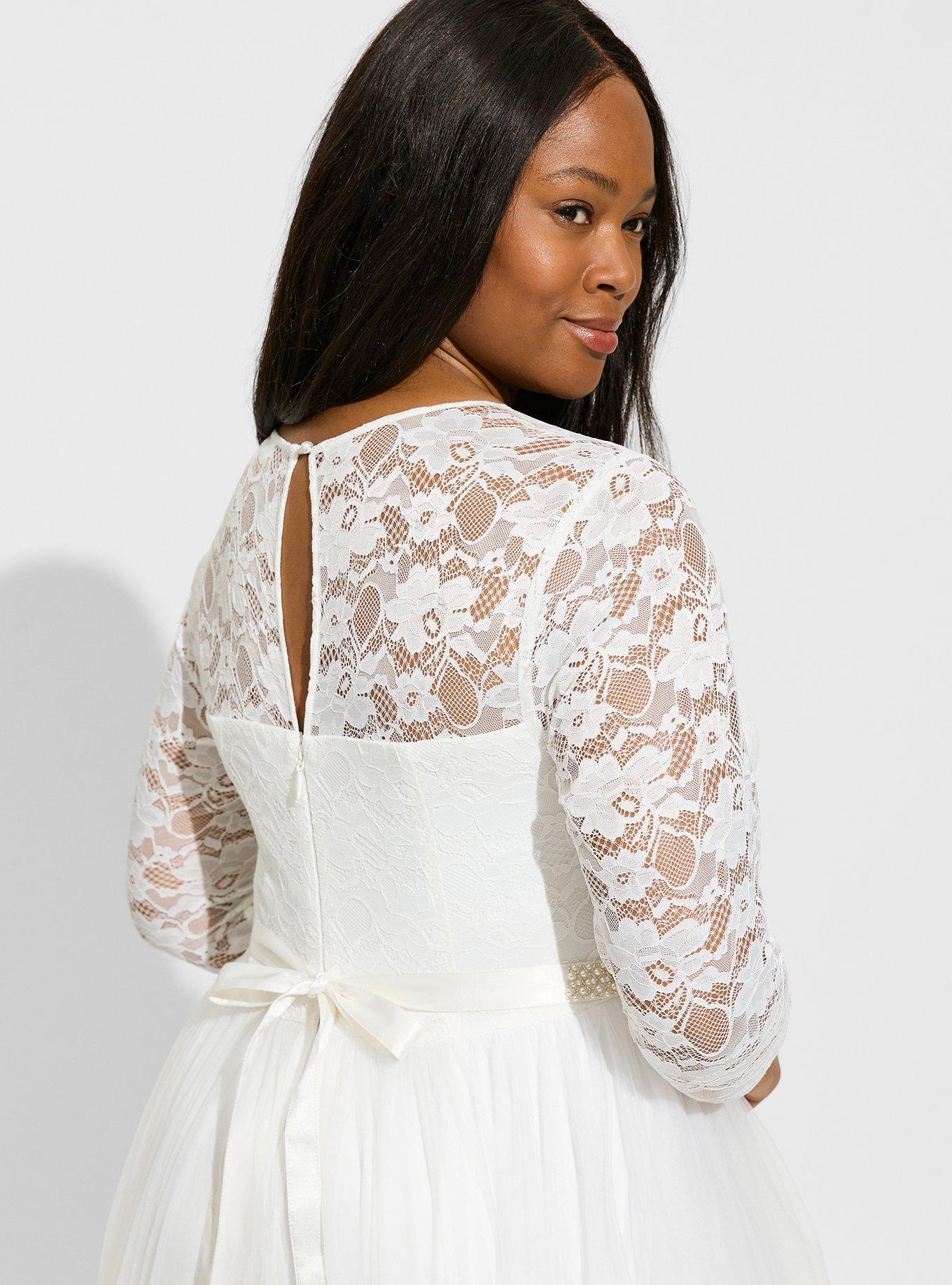 YOURS LONDON Plus Size White Lace Bridal Midi Dress Yours Clothing