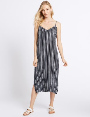 Striped clearance slip dress, Striped Sleeveless Midi Slip Dress M S Collection M S clearance