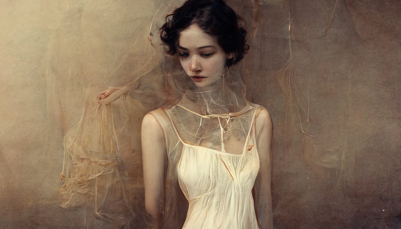 prompthunt beautiful woman wearing a transparent pale beige dress