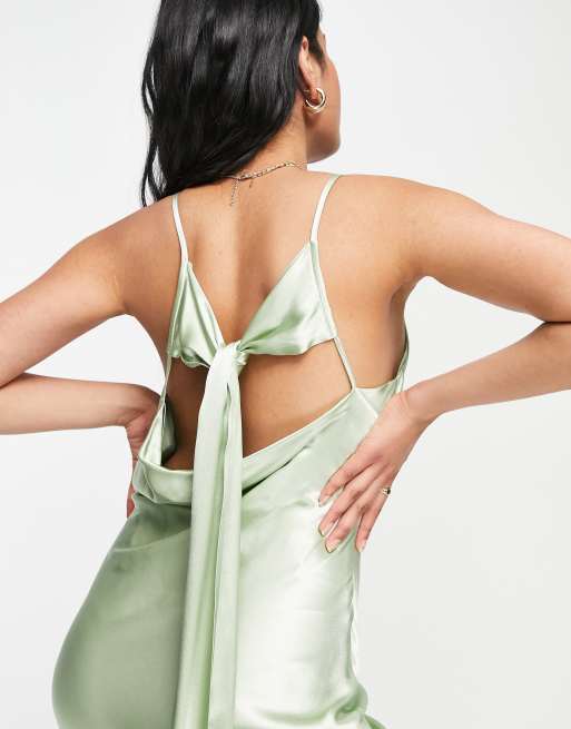 Topshop bridesmaid tie back satin slip dress in sage ShopStyle
