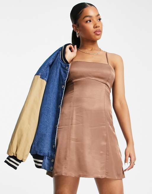 Pull Bear cami mini satin slip dress in bronze ASOS