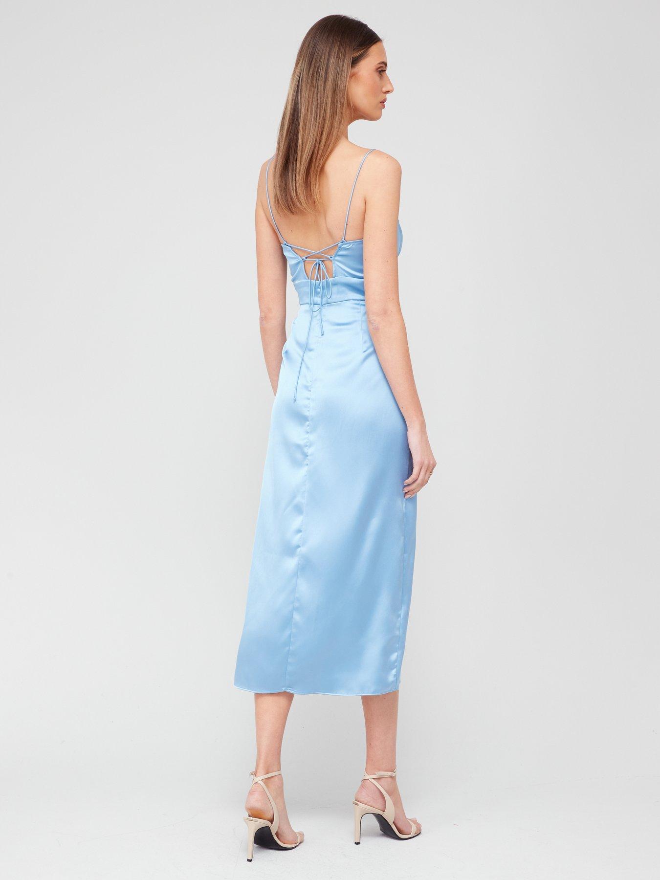 Cowl Neck Satin Slip Cami Midi Dress Sax Blue SilkFred IE