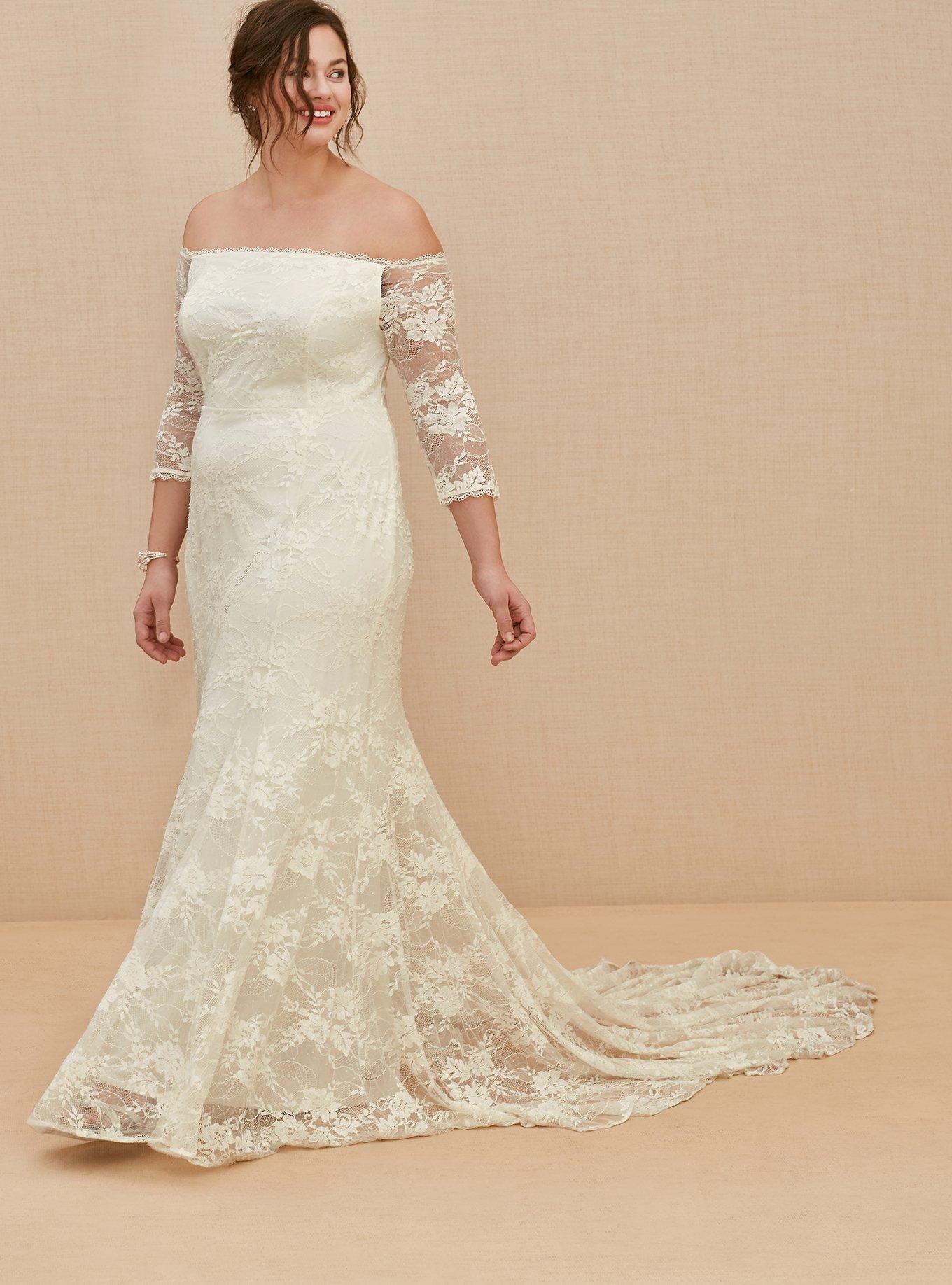 Plus Size Ivory Off Shoulder Lace Sequin Wedding Dress Torrid