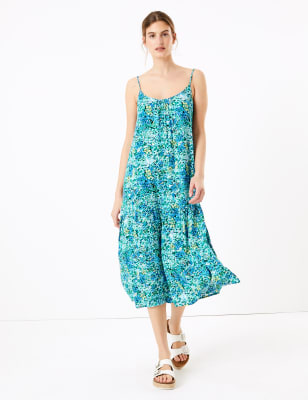Printed midi slip clearance dress, Floral Satin V neck Midi Downtown Cami Slip Dress Express clearance