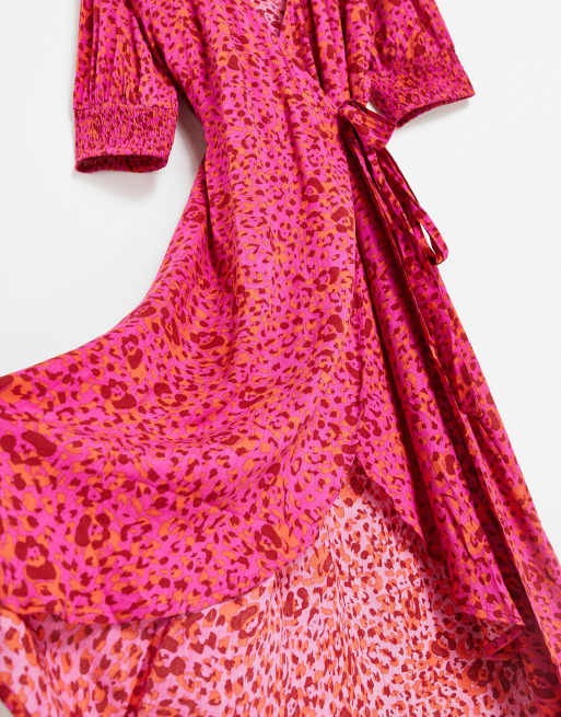 Pink clearance leopard dress, Simply Be wrap midi dress in pink leopard print ASOS clearance