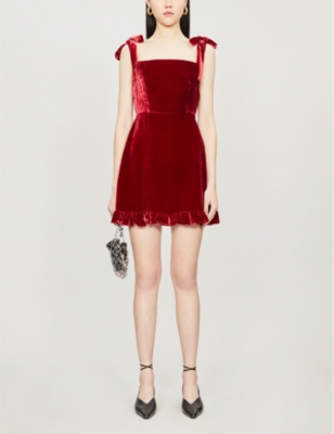 Reformation clearance minetta dress, Reformation Minetta Crimson Red Velvet Tie Shoulder Mini Dress in clearance