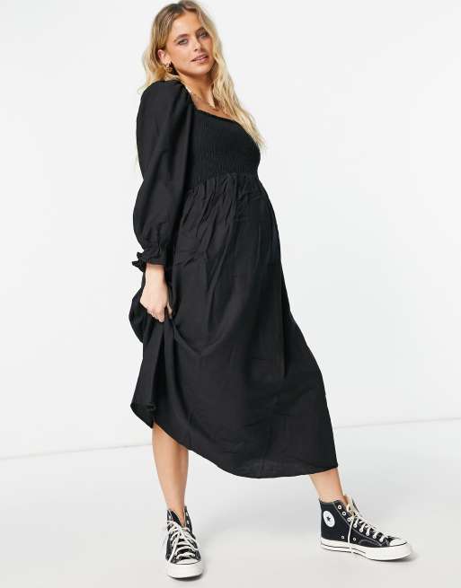 New look black clearance maternity dress, Maternity Black Ribbed Split Hem Midi Dress New Look clearance