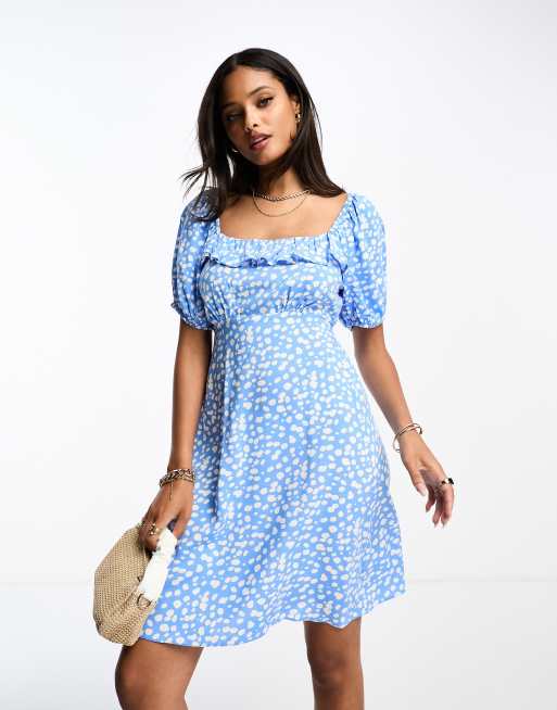 New Look Mini jurk met ruches aan de mouwen en blauw met bloemenprint