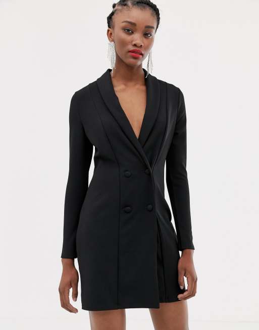 Urban Bliss Black Sleeveless Tuxedo Dress New Look
