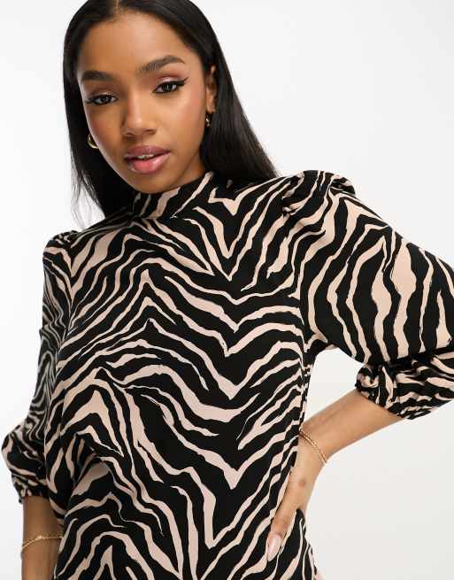 New Look high neck 3 4 sleeve midi dress in zebra print ASOS