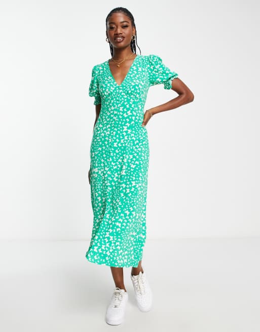 New Look button down midi tea dress in green pattern ASOS