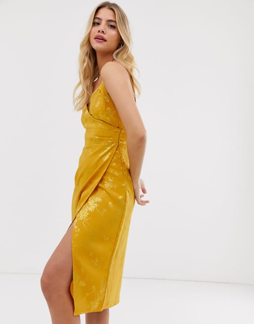 New look satin jacquard clearance midi dress in gold, Create a Gorgeous Women s Slip Dress Outfit for Less Pretty clearance