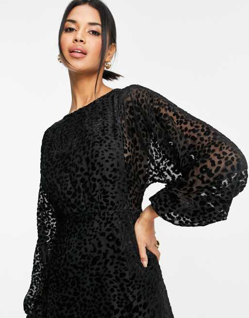 Black animal print clearance dress, Plum And Black Animal Print Long Sleeve Midi Smock Dress AX Paris clearance