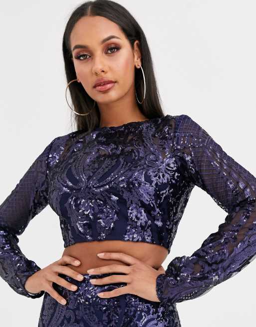 Navy sequin crop clearance top, Monique Sequin Corset Crop Top Navy clearance