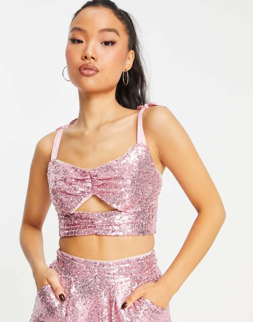 Jaded Rose Petite exclusive sequin cut out crop top in baby pink