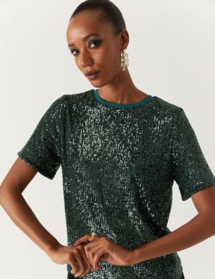 Buy Women s T Shirts Green Sequin Tops Online Next UK