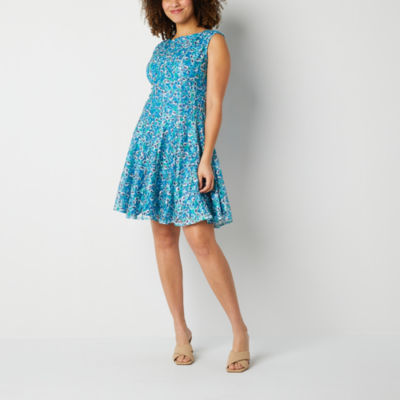 Danny Nicole Sleeveless Floral Mixed Lace Midi Fit Flare Dress
