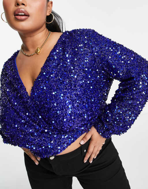 Blue sequin top clearance plus size, YOURS LONDON Plus Size Dark Blue Sequin Flute Sleeve Top Yours clearance