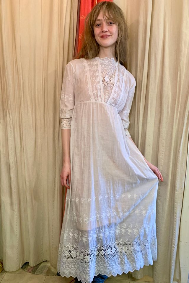 Vintage Edwardian Full Length Dress with Lace Panels Selected by