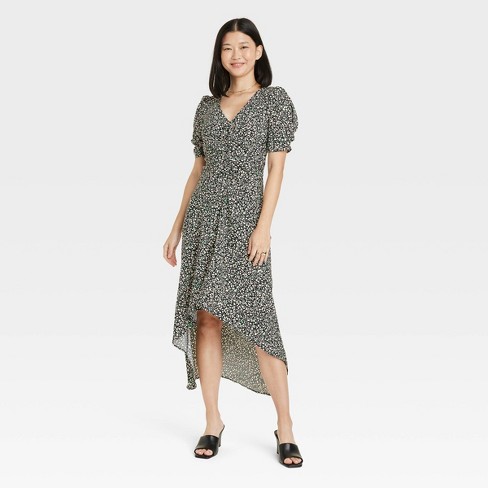 Women s Crepe Short Sleeve Midi Dress A New Day Green Floral M