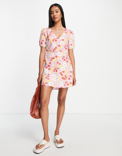 Madewell orchard flutter clearance sleeve dress, Vero Moda mini dress with knot open back in retro floral ASOS clearance