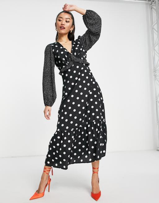 Buy Black White Polka Dot Volume Sleeve Midi Dress from Next Austria