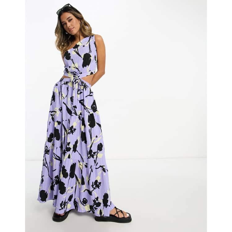 Purple and white clearance maxi dress, ASOS DESIGN textured crinkle one shoulder maxi dress with cut out clearance