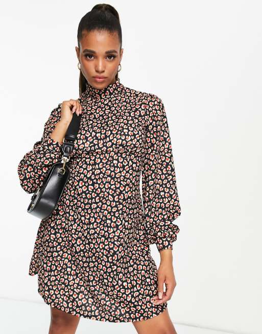 ASOS DESIGN high neck mini dress in black and red leopard print ASOS