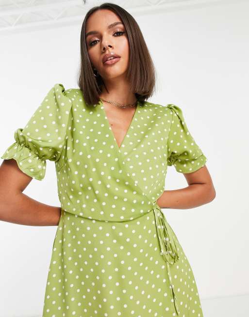 Socialite Sage Green and White Polka Dot Wrap Midi Dress
