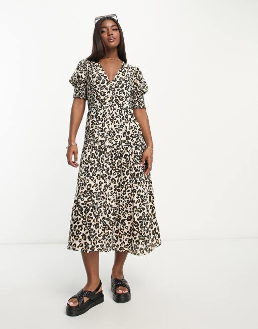 Leopard clearance tiered dress, Leopard Print Button Front Tiered Maxi Dress clearance